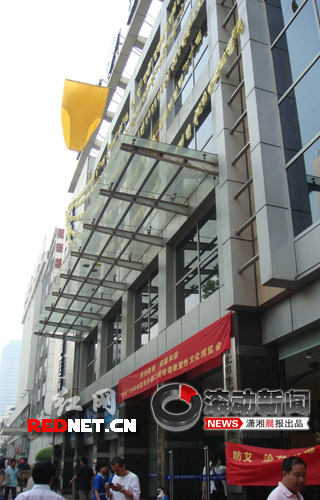 “一共懸掛了500條男性黃色內(nèi)褲,其中一條最大的男性內(nèi)褲,長4米,寬3米,特意在外面定做的,是長沙城最大的內(nèi)褲!贬t(yī)院工作人員熊先生說,醫(yī)院在進(jìn)行中國長沙內(nèi)褲文化展,里面懸掛了一些宣傳圖片,懸掛500條男性內(nèi)褲是他的主意。