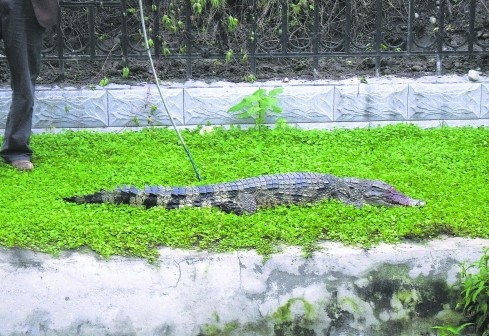 鋒利的牙齒、強大的撕咬能力,兇猛的鱷魚令人望而生畏。昨天,一條本打算運往重慶喂養(yǎng)的鱷魚,莫名其妙地在溫江開發(fā)區(qū)某公司停車場內(nèi)失蹤了。是被“好吃嘴”偷走了,還是逃脫了?43斤重、將近兩米長的大活鱷魚讓大家膽戰(zhàn)心驚———如果傷到人怎么辦?經(jīng)過地毯式搜尋,巡邏隊員昨日傍晚終于在路邊的水溝中找到了逃脫的鱷魚……