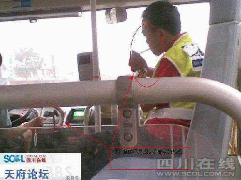 7日,網(wǎng)友“飛過海里”在天府論壇發(fā)帖稱,當(dāng)日早上,他乘坐車牌號為川A90107的72路公交車去上班,剛上車,就發(fā)現(xiàn)駕駛員和安全員一邊聊天,一邊開車。在他快下車時,司機(jī)居然摸出兩支煙,自己拿一支,給公交安全員一支,并隨后點(diǎn)燃了煙。此時車上還有乘客,兩人就抽起了煙。