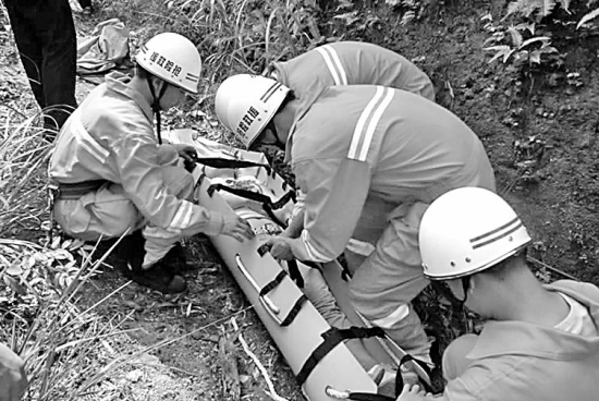 經(jīng)過1個(gè)小時(shí)營(yíng)救,受傷女子終于獲救,隨即被抬到等候已久的救護(hù)車上。