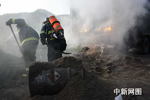 據(jù)了解,共有四桶黃磷泄漏并自燃。由于事故發(fā)生地并非人員聚居地,自燃黃磷數(shù)目不大且撲救及時,事故對空氣和水的影響較小,當(dāng)?shù)匚唇M織下風(fēng)口村民疏散。