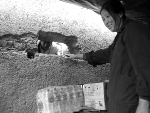 省實(shí)驗(yàn)中學(xué)南側(cè)是一道高大的磚石院墻,但仍擋不住小攤食品。記者看到,院墻被掏開(kāi)一個(gè)小洞,洞南邊是一個(gè)用帆布臨時(shí)搭建的小棚子,棚子里擺著飲料、香腸、方便面,女?dāng)傊髡褞灼匡嬃享樦催f給那邊的學(xué)生。僅10分鐘,女?dāng)傊鞅阗u(mài)出了20多瓶飲料。