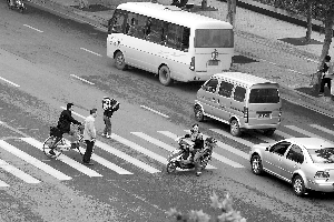 記者在走訪調(diào)查中發(fā)現(xiàn),鄭州市區(qū)的每條斑馬線都處于人車混行狀態(tài),大部分車輛在斑馬線前均未停車避讓行人。行人橫過馬路時(shí),機(jī)動車會在距離行人較遠(yuǎn)的地方開始鳴笛,示意行人給他讓行,有的還會加速行駛想搶在行人之前通過。面對飛馳而來的車輛,穿行斑馬線的行人只能是瞻前顧后,左躲右閃。