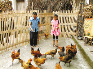 曾得益種莊稼、打花鼓、加上農(nóng)村低保,一年收入不到3000元。為補貼家用,父女倆還養(yǎng)了16只雞。養(yǎng)雞后,璐璐天天到堰塘摸貝殼喂雞,盼著它們快些長大。