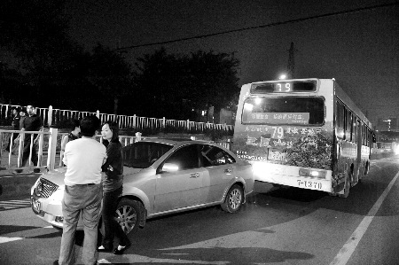 9月25日晚8點(diǎn)左右,一輛79路公交車(chē)沿二環(huán)支路自西向東快行至鐵路橋時(shí),突然倒車(chē)行駛,越過(guò)中間線(xiàn)后車(chē)屁股朝著一輛自東向西正常行駛的別克車(chē)屁股撞去,別克車(chē)屁股被撞得凹了進(jìn)去,公交車(chē)的尾燈也被撞掉。