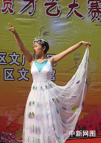 中新網(wǎng)重慶9月29日電 (孟幻 郭晉嘉)舞蹈、魔術(shù)、笛子獨(dú)奏……29日,來(lái)自重慶市渝中區(qū)12個(gè)街道的上百名外來(lái)務(wù)工人員獻(xiàn)藝,參加當(dāng)?shù)嘏e辦的外來(lái)務(wù)工人員才藝大賽,迎接新中國(guó)60華誕。