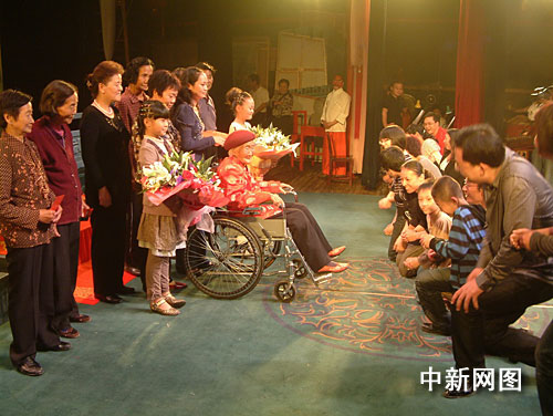 中新網(wǎng)義烏10月1日電(陳國亮 甘小虎)今天是祖國60大慶,浙江省義烏市廿三里街道埠頭村的村民們也很開心,上午高高興興的通過電視觀看了盛大的天安門閱兵儀式,晚上有很多老年村民都涌到村里曬場(chǎng)上看起了社戲。因?yàn)榻裉欤彩窃摯逵惺芬詠淼谝粋(gè)百歲老人過百歲大壽的日子,村里要連續(xù)演三天四夜的社戲,而且是浙江婺劇團(tuán)的角兒來演。村民們能不開心嗎?