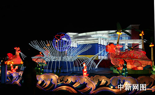 中新網(wǎng)海口10月1日電(付美斌)1日晚上8 時,海南?谑腥f綠園人潮涌動,燈火輝煌、流光溢彩,海南省慶祝新中國成立60周年大型主題彩燈展今晚正式亮燈開展。整個燈展設七大板塊共60個燈組,展為期一個月。