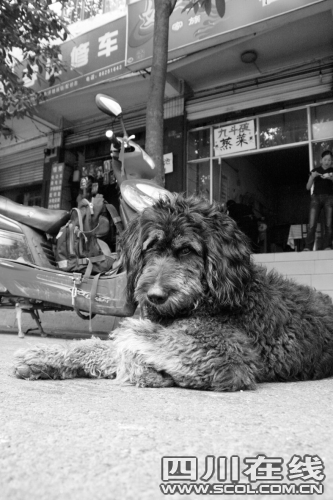 “煤炭”是一只雜交的古牧犬,今年才1歲,但塊頭已經(jīng)不小,乍一眼看去還挺嚇人的。去年地震后不久,楊瓊從朋友那里要來(lái)了剛出生的“小煤炭”,“當(dāng)時(shí)也沒(méi)多想,就覺(jué)得狗狗可愛(ài),我也有時(shí)間來(lái)養(yǎng)!辈贿^(guò)“煤炭”的到來(lái),卻意外地給楊瓊解決了一個(gè)大問(wèn)題。