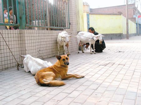 幾天前,記者在韋曲街道見(jiàn)到了老魏,老魏正忙著擠羊奶。老魏告訴記者,他養(yǎng)這4只奶山羊,“虎子”幫了大忙咧。老魏說(shuō)的“虎子”其實(shí)就是臥在4只羊跟前的一條黃狗。“這虎子今年才3歲,可真是羊的鐵桿保鏢!崩衔撼鲩T(mén)賣(mài)羊奶,他背個(gè)手在前面走,“虎子”領(lǐng)著羊兒跟在后面。到了下午,老魏到坡上放羊。他把“虎子”叫到羊跟前,吩咐一聲“把羊看好”后,便忙別的事!盎⒆印笨墒潜M職盡責(zé),一直守在羊跟前,生人要想靠近羊兒連門(mén)都沒(méi)有。天快黑了,老魏來(lái)到坡下,“回家咧!”一聲吆喝,“虎子”領(lǐng)著羊群順溜溜地下了坡!3年來(lái),還沒(méi)丟過(guò)羊呢。”老魏說(shuō)起虎子來(lái)贊不絕口。