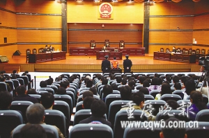 昨上午9時20分,還沒開庭,能容納200多人的一中院中法庭就被擠滿,法院只能臨時決定更換法庭。雙方當事人的同學、親屬和市民共有400多人到場旁聽。一中院確定由該院分管刑事審判的副院長李生龍擔任審判長、刑事審判第一庭庭長陳遠平擔任承辦人。