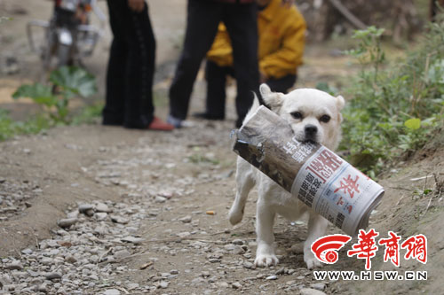 每天上午9時(shí),給李爺爺家送華商報(bào)的投遞員張躍進(jìn),會(huì)準(zhǔn)時(shí)到達(dá)位于西安市南郊的東三爻堡!皥(bào)紙來咧!”站在李爺爺家門前一段50多米長的坡路下,張躍進(jìn)會(huì)扯著嗓子吆喝一句。幾秒鐘后,張躍進(jìn)和周圍的鄰居便會(huì)看到,一條黃白相間的小狗,從坡路上飛快地跑來,用嘴叼起張躍進(jìn)遞來的報(bào)紙!翱烊!把報(bào)紙給爺爺!甭犃藦堒S進(jìn)的話,小狗花花扭身徑直跑到李爺爺跟前,把報(bào)紙交到老人手中。