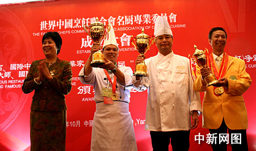 來自韓國、新加坡、荷蘭、日本、美國等10個國家及地區(qū)的40名廚師,經(jīng)過激烈的角逐,經(jīng)世烹聯(lián)國際評委分別從“味道”、“質(zhì)感”、“觀感”和“衛(wèi)生”四個方面,評出最佳創(chuàng)意獎、最佳造型獎各1人和國際中餐廚王金獎9人、銀獎12人和銅獎12人。澳門廚師張志歡、福建廚師胡滿榮、 澳門廚師呂家祥位列前三名,分別榮獲冠軍、亞軍、季軍。同時,臺北開平餐飲學校15歲學生宋浩廷)獲大賽最佳創(chuàng)意獎、韓國金賢姬獲最佳造型獎。