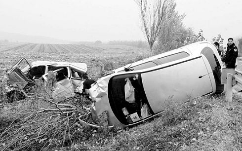 10月26日上午9點20分左右,在沈丹高速公路20公里處沈陽方向發(fā)生一起交通事故,一輛標致307轎車與一輛同向行駛的微型面包車撞在了一起后,一同沖下路基闖入了高速公路東側的田地中。車禍造成微型面包車上的正副駕駛兩人死亡,其余4人不同程度受傷。死亡的是夫妻倆,從本溪回昌圖老家奔喪,沒想到在路上發(fā)生了這樣的不幸。