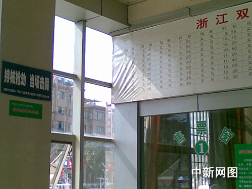 標(biāo)語是用鐵皮或是鋁皮制作,用釘子固定在售票廳的墻上。標(biāo)語上顯示其宣傳單位是“永康市打擊‘兩搶’犯罪專項行動宣傳工作領(lǐng)導(dǎo)小組辦公室”。 記者不知它是什么時候被貼上去的,但估計這標(biāo)語不同于紙質(zhì)標(biāo)語或是布質(zhì)橫幅,它是要被貼很長一段時間的。