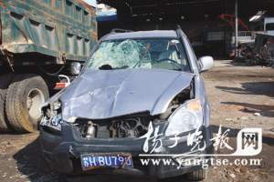 昨天上午在停車場,記者見到了肇事車輛:牌照為蘇HBU790雙環(huán)越野車,前擋風(fēng)玻璃半邊差不多被撞碎,上面還有一個(gè)大洞,直徑為49厘米,并且從碎裂的玻璃縫隙中提取了數(shù)根頭發(fā)。從車內(nèi)名片盒內(nèi),記者找到一張杜軍本人的名片,上面寫有“志圣科技(廣州)有限公司蘇中地區(qū)經(jīng)銷部工程師”字樣。據(jù)楚州區(qū)公安局交警大隊(duì)辦公室主任朱士能介紹,昨天上午杜軍血檢結(jié)果顯示,他屬于醉酒駕車,應(yīng)負(fù)事故全責(zé)。警方同時(shí)已安排人員到杜軍家讓他們盡快先拿出10萬元來做死者家人的安撫工作。一名不愿透露姓名的民警告訴記者,從事故發(fā)生時(shí)間以及杜軍的血檢結(jié)果來看,杜軍應(yīng)該是中午喝的酒。他同時(shí)告訴記者,該車在事故發(fā)生前還有一起闖紅燈,兩起違停行為。