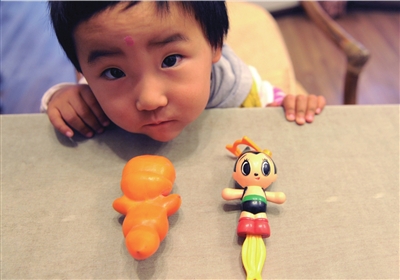 據(jù)楊女士介紹,上周末,她帶著2歲的女兒家奕到農(nóng)村去采摘,“孩子牙還沒(méi)長(zhǎng)齊,正好喂軟柿子吃”。在柿農(nóng)為其采摘時(shí),家奕在一旁往樹(shù)上看,“她用手指著,嘴里嘟囔著什么!边@個(gè)柿子被摘下來(lái),柿農(nóng)說(shuō)它像人參果,就把它送給了家奕!盎貋(lái)的路上,家奕就一直在玩那個(gè)柿子,嘴里還是嘟囔著!被氐郊,家奕拿出“鐵臂阿童木”的玩偶,楊女士才知道,原來(lái),家奕一直在說(shuō)那個(gè)柿子像“阿童木”。楊女士說(shuō),“這個(gè)‘柿子阿童木’都已經(jīng)軟了,但是,如果放進(jìn)冰箱凍起來(lái),家奕玩不到就會(huì)哭的! (實(shí)習(xí)記者李川)