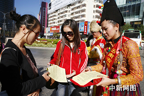 在今日舉行的宣傳活動(dòng)上,記者見到了這二十六位“消防形象大使”。他們身著傳統(tǒng)民族服裝,向市民發(fā)放消防安全知識(shí)手冊(cè),并現(xiàn)場(chǎng)為市民講解消防知識(shí)。據(jù)稱,他們回到自己家鄉(xiāng)后,還將繼續(xù)當(dāng)?shù)仄稹跋佬蜗蟠笫埂钡穆氊?zé),向云南少數(shù)民族地區(qū),特別是邊遠(yuǎn)的地區(qū)宣傳消防知識(shí)。