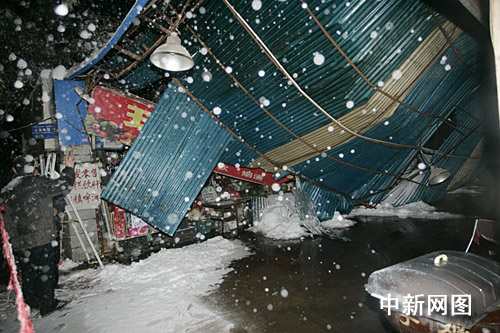 中新網(wǎng)石家莊11月10日電(李光)今天下午,河北省石家莊市槐中路新世隆商場附近一自由市場由于頂蓬積雪過多被壓塌。