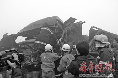 據(jù)消防隊員介紹,大霧致使京福高速公路上發(fā)生多起車禍,他們在現(xiàn)場共救出4人,其中2人死亡,2人受傷。