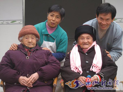 樂(lè)山市中區(qū)青平鎮(zhèn)傳有一段佳話:寶興村的王云清大孝感天,贍養(yǎng)的兩位百歲母親因此福壽延年,身康體健。母親李叔華,94歲,岳母李玉容,100歲,兩位壽星竟同降一屋。12年來(lái),這對(duì)親家母在子孫們的供養(yǎng)下形同姐妹,朝夕相處,盡享天倫之樂(lè)。