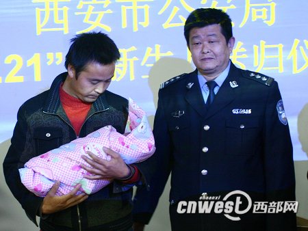 備受公眾關注的西安交大一附院丟失女嬰今天終于回到了父親嚴小紅的懷抱。今天(12月2日)下午西安市公安局專門舉行送歸儀式將女嬰交給他的父親嚴小紅,西安市公安局通過DNA鑒定,確定女嬰為嚴小紅和張?zhí)m芳的親生女兒。