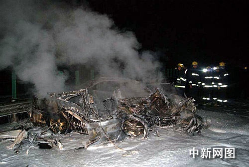 隨后,經(jīng)過消防官兵近20分鐘的奮力撲救,大火被成功撲滅,后經(jīng)官兵們仔細偵查后發(fā)現(xiàn),在奔馳轎車的駕駛室與車后座各有一人,但都已喪生火海。