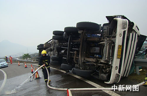 中新網(wǎng)溫州12月15日電(記者 江耘 通訊員 徐行號(hào))12月15日上午,浙江金麗溫高速溫州南出口處,一輛由天津開往福州的大貨車側(cè)翻,事故造成車內(nèi)兩人一死一傷。