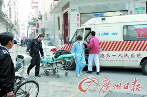 昨日,在順德區(qū)大良環(huán)市北路銀華樓,居民經(jīng)歷了一個(gè)驚心動(dòng)魄的下午。下午3時(shí)45許,一名持刀男子跑進(jìn)了小區(qū)的車庫(kù)內(nèi)試圖割脈自殺,民警不顧危險(xiǎn)赤手奪刀時(shí),雙方展開了激烈的搏斗,一名民警和一名治安員不慎被刀具割傷,隨后一民警一腳踢飛男子手中的刀,將男子制服后送上了救護(hù)車。
