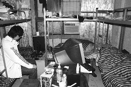 楊華是福建泉州人,兩年前從廈門大學畢業(yè),在當?shù)匾凰鶎W校當老師!跋胗幸环蟮淖鳛!苯衲瓿,他辭職上北京闖蕩,遇到很多挫折又來到了重慶。他說,剛到重慶時身上只有1000元,而這1000元還是信用卡透支的。找到這種出租床位的公寓,就立刻住下了!白≡诶锩娴亩际遣畈欢嗑秤龅男值!睏钊A說,工作的地方就在405車站對面,幫人家做廣告,收入不固定。“運氣不好的話一個月1000!彼懔艘还P賬,每月房費260、飯錢600,身上幾乎不剩錢?斓街形绲臅r候,楊華出去了一會,在樓下端上來一碗小面,3塊錢。他說,有時候會很茫然,不知道未來在哪里。鄭偉是楊華的房東,他說自己也曾是北漂,知道這些大學生的不易!艾F(xiàn)在租床位的大學畢業(yè)生越來越多了!彼f,商圈周圍很多家這種出租床位的,都是針對找工作的大學生。在他這里租床位的畢業(yè)生,基本都在觀音橋商圈上班!白鲣N售跑業(yè)務(wù)的居多,一月也就千把塊!编崅u搖頭感嘆。記者 談書 實習生 蔡力