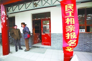 今天上午9時(shí)許,略顯冷清的望京公園里,幾條帶著相親標(biāo)語的紅色橫幅旁,時(shí)不時(shí)會(huì)有幾個(gè)晨練者走過。民工相親會(huì)的組織者們在公園管理處的辦公室里靜待相親者。盡管此后的一小時(shí)里,先后有10余名相親者魚貫而入,但令人擔(dān)心的一幕還是發(fā)生了,前來相親的基本都是男性。