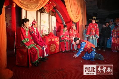 新娘孫蓓說(shuō):“現(xiàn)在,人們對(duì)傳統(tǒng)的東西都淡化了,我們希望通過(guò)自己的行動(dòng)喚起更多人對(duì)傳統(tǒng)文化的興趣。”