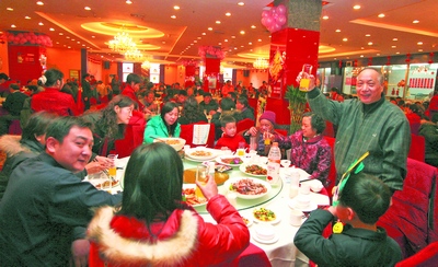 鄭龍(自由職業(yè)者):我家以前都是在家里吃團(tuán)年飯,現(xiàn)在變成了到外面一邊吃一邊談。現(xiàn)在城里人的消費(fèi)能力越來(lái)越強(qiáng)了,不管你是到哪里吃年夜飯,酒家也好,賓館也好,農(nóng)家樂(lè)也好,自己家里也好,關(guān)鍵是要吃得開心。