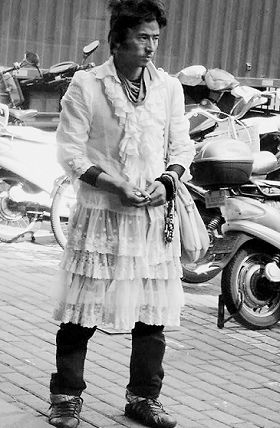 “他想有個(gè)老婆有個(gè)家。他穿上女人的衣服,把自己想象成一個(gè)女人,這樣他就合二為一了,就有了一個(gè)完整的家,就幸福了!