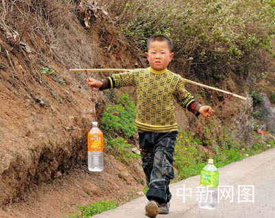 中新網(wǎng)興義3月29日電 (曹多然 章瑩)黔西南旱情目前仍在持續(xù)。3月29日,記者此間在貴州旱區(qū)走訪中發(fā)現(xiàn),當(dāng)?shù)卮迕袢駝訂T,通過找水、買水等方式積極開展自救,取水路上不時可見稚齡“小水童”的身影。貴州興義市白碗窯鎮(zhèn)柳樹坪村8歲的劉凱就是其中的一員。