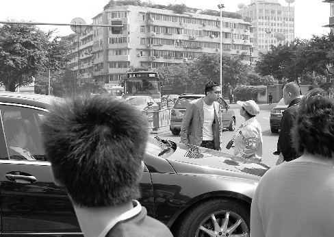 在此處執(zhí)勤的女交通勸導(dǎo)員立即上前攔住了第二輛意圖違法調(diào)頭的奔馳車。沒想到,奔馳車車主毫不理會她的阻止,不僅調(diào)過了車頭,更逼得攔在車前的勸導(dǎo)員大姐步步后退到路旁。勸導(dǎo)員只好一面撥打電話一面防止這并未上牌的奔馳車溜走。這時,從車上下來一名戴墨鏡的小伙子甩下一句:‘你不就是要罰個款嘛,老子有的是錢!’”