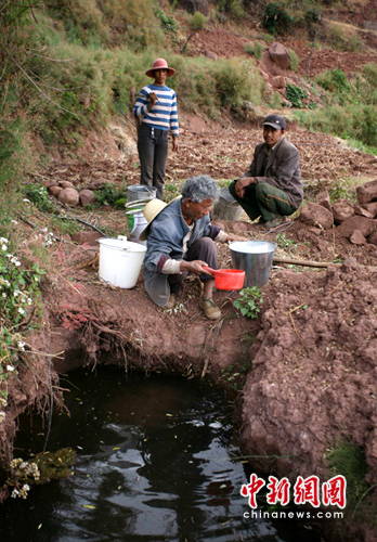 據(jù)介紹,2009年中秋節(jié)之后,坡西這帶就沒(méi)有下過(guò)雨?粗惶焯斓臏p少,每個(gè)人都憂心忡忡的。大家都曉得,如果一直不下雨,這口井遲早都會(huì)干枯的。從那個(gè)時(shí)候開(kāi)始,上灣組的村民無(wú)論是出去放羊還是干農(nóng)活,哪怕只是路過(guò),都會(huì)留意哪里會(huì)有新的水源。