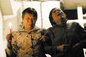 昨天晚上9點(diǎn)45分,死者張某的家人們依然留在樓道內(nèi),把點(diǎn)燃的蠟燭安放在6樓至1樓間的走道上。家人們說(shuō),晚上把蠟燭點(diǎn)在樓道上,是想讓逝者“平安下樓”。