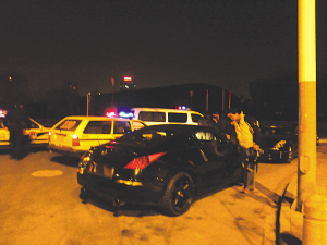 就在記者采訪的時(shí)候,4輛豪車又回到了奧體北門。大家停好車,紛紛下車抽煙聊天。記者急忙追了上去,只見在奧體北大門西側(cè)路面上,一字排開著4輛顏色不一的豪華跑車,車尾處留下了一道道長(zhǎng)長(zhǎng)的剎車痕跡,足見停車前的速度很快。4輛顏色不一的豪華跑車中,有三輛車子上沒有上牌照,有一輛車子車牌擋著。車上下來的都是年輕人,車手都是男的,每人身邊跟著一位大美女。車主們說這些跑車都是自己私車,個(gè)個(gè)都自稱是富二代,他們每個(gè)人所開的跑車都在80萬至100多萬之間,還不是最好的車輛。見此情況,記者立刻報(bào)了警,并拿出相機(jī)拍照采訪。