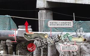 鐘福平說,聽到工地沖進(jìn)搶包嫌犯,他也慌忙來到污水管處。交巡警和幾名市民已在現(xiàn)場。鐘福平告訴交巡警,這是解放碑商圈的排污管道,管道直徑0.8米,只容得下一個人爬行。