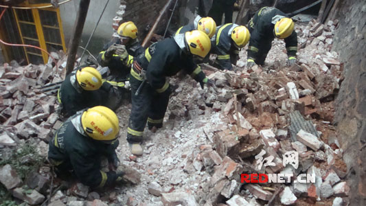 經現(xiàn)場偵察發(fā)現(xiàn),坍塌房屋為一間磚瓦結構的倉庫,由于連續(xù)暴雨,泥土松動引發(fā)山體滑坡,泥石流將房屋埋壓,現(xiàn)場隨時都有二次滑坡的可能。面對危急復雜的現(xiàn)場,大隊指揮員果斷下令指派安全員觀察現(xiàn)場、設立安全隔離帶、疏散圍觀群眾、調集醫(yī)護人員在場等候,指揮中隊官兵全力搜救。三分鐘后,一名被困者被成功救出并立即送往醫(yī)院救治,經詢問現(xiàn)場知情人,屋內還有一名中年男子被埋壓在廢墟里面,經大致排查方位,大隊指揮員立即命令中隊官兵進行多點作戰(zhàn),對重點部位進行地毯式搜救,經過消防官兵近半個小時的艱苦奮戰(zhàn),被困人員被成功救出。(通訊員 楊凡)