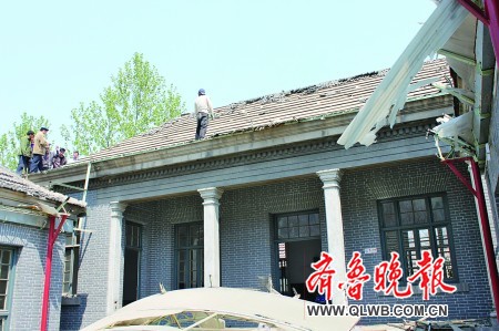 4月30日上午,濟(jì)南市中山公園東片區(qū)拆遷工作在緊張進(jìn)行。經(jīng)四路343號大院里,有幾個人翻墻入院爬到屋頂上揭瓦,濟(jì)南市體育局所屬的濟(jì)南市民體質(zhì)監(jiān)測中心工作人員正在阻止他們上到房頂揭瓦。“下面屋子里還有人呢,怎么就這么拆房?”