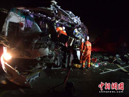 消防官兵現(xiàn)場了解到,事故發(fā)生后兩車上的傷員已在先期到場的民警及現(xiàn)場熱心群眾的幫助下送往醫(yī)院救治,但仍有10人被困于兩車之上,估計(jì)全部遇難。為盡可能救助受困人員,消防官兵馬上組織了救援行動,四名官兵爬上變形車體,利用液壓擴(kuò)張器和切割機(jī)切開擠壓在被困者身上的零部件,而后將人員一一抬出?墒且蜍圀w變形扭曲嚴(yán)重,多名遇難人員均是被座位和車輛部件緊緊絞壓,使得救援行動困難重重。