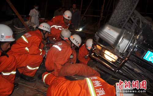 消防隊員對事故車輛進行了緊急搶救,救援人員利用液壓擴張器、切割機、鐵鍬等破拆器材對車體進行強行破拆。22時16分,一名后座椅被困人員被成功救出,并及時送往醫(yī)院進行搶救。23時37分,在當?shù)孛窬、醫(yī)護人員的緊密協(xié)助下,經(jīng)過近2個小時的奮力營救,成功將最后5名被困人員全部救出。