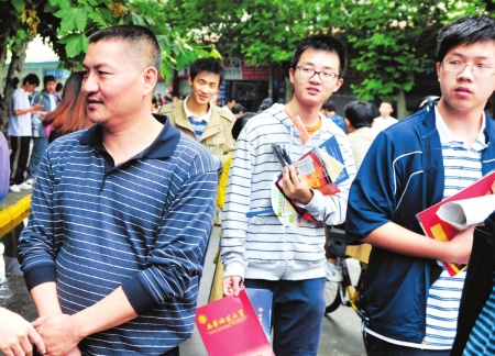 對下午的數(shù)學,他也感覺發(fā)揮得不太好。“2002年考了70多分,2006年考了50多分,今年還說不清楚!睆土晻r他在英語上下了不少功夫,希望今天的考試能夠再順一些。