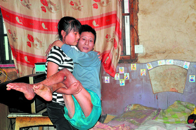 劉楨原本有個還算幸福的家庭,可在當年的一場礦難中,作為礦工的劉中心被壓斷了脊椎,腰椎受損,神經(jīng)受到破壞,從此落下了半身不遂,大小便失禁,生活不能自理。一年之后,其妻子因不能忍受貧寒改嫁他鄉(xiāng)。那一年劉楨才5歲,家庭所有的生活重擔全部壓在了她稚嫩的肩上。
