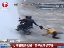 飛車(chē)賊搶劫女子 梁山好漢以1敵2勇擒歹徒