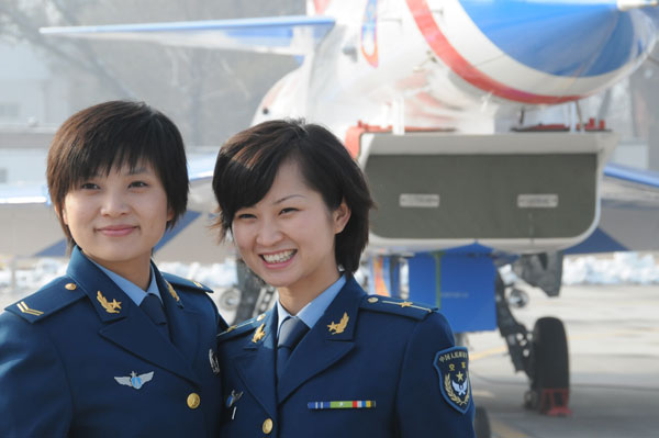 組圖:實拍美麗女兵與殲10雙座表演機