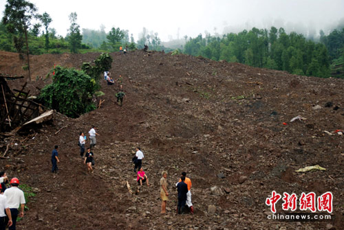 貴州安順市關(guān)嶺縣“6.28”山體滑坡災(zāi)害現(xiàn)場(chǎng)搶險(xiǎn)救援指揮部指揮長(zhǎng)、安順市副市長(zhǎng)羅榮彬29日稱,此次山體滑坡體量達(dá)到100萬(wàn)方,連日強(qiáng)降雨及當(dāng)?shù)氐匦螚l件等因素都讓救援工作舉步維艱。 圖為搜救人員救出被困群眾。(渝分供圖)