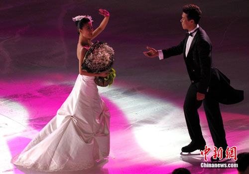 9月4日,申雪/趙宏博在首都體育館舉辦冰上婚典,并邀請(qǐng)普魯申科、亞古丁、約翰尼·威爾、淺田真央、羅切特等世界花滑巨星,聯(lián)袂世界著名編舞大師瑞內(nèi)·羅卡、歌星張靚穎、小提琴家呂思清等,為中國觀眾奉獻(xiàn)上一場(chǎng)賞心悅目、浪漫唯美的視聽盛宴。